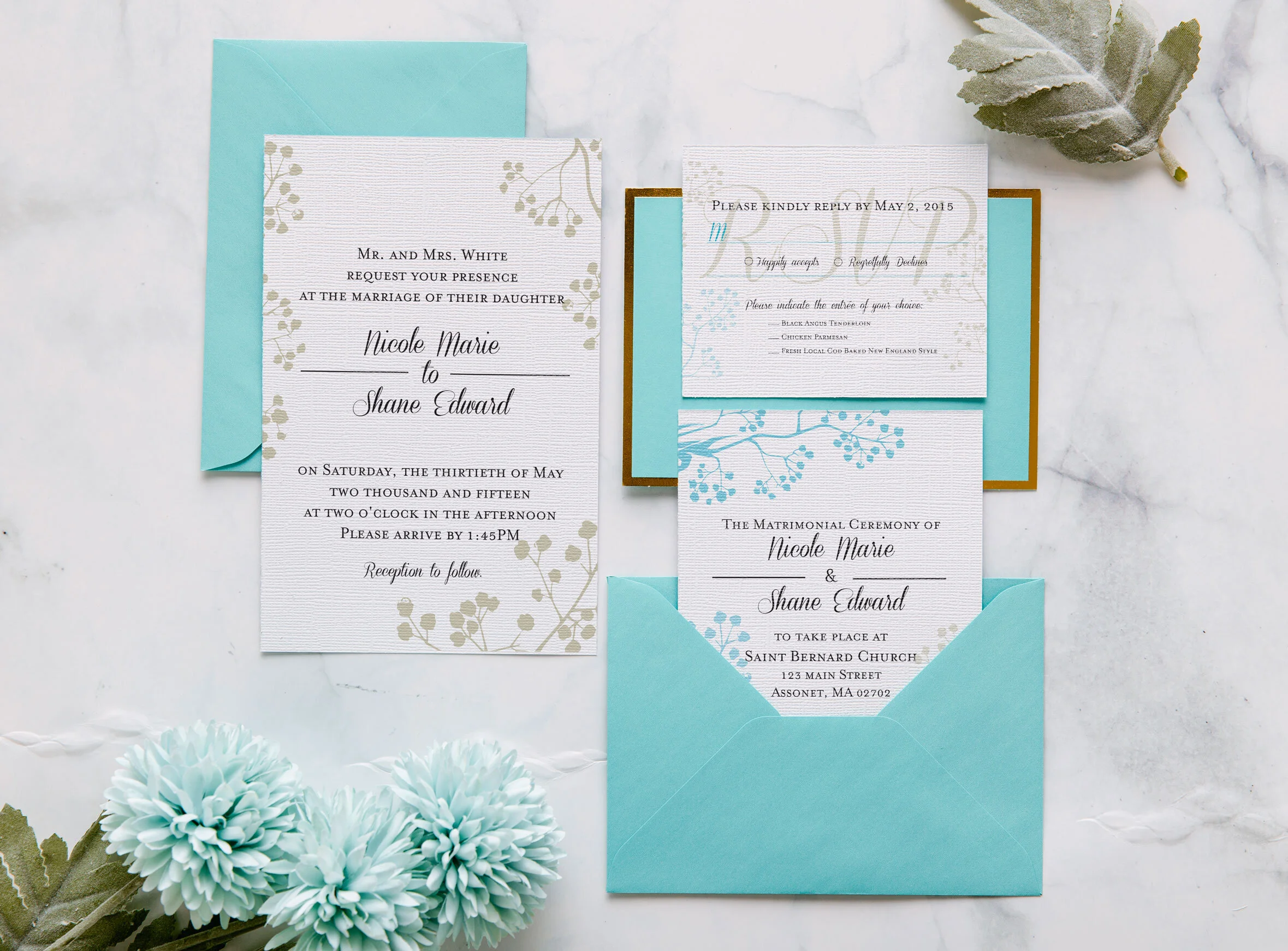 A classic wedding stationary suite for an early spring wedding with a barn reception.